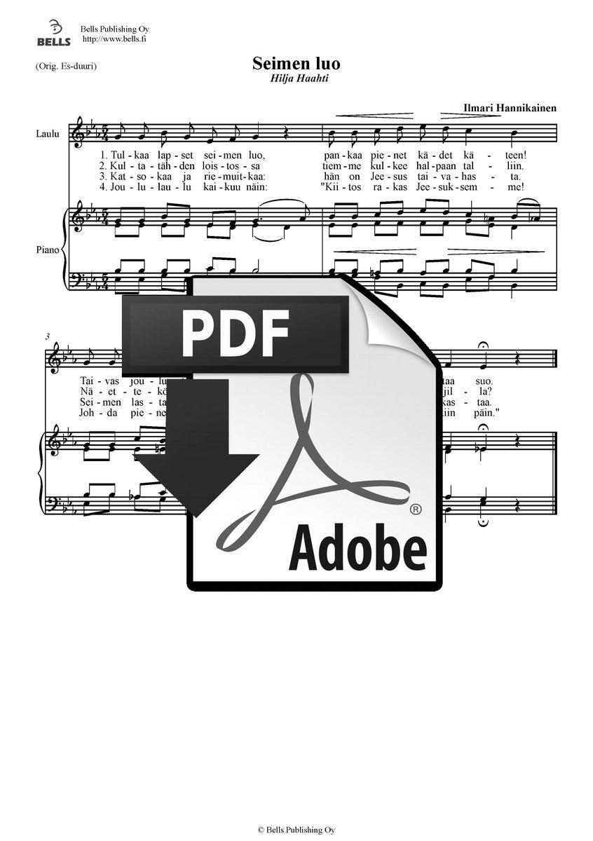 The downloadable products: the digital sheet music (pdf) and audio files will be collected normally in the shopping cart. They are paid via the Klarna Checkout payment options. The direct internet link for downloading will be seen after the payment announcement is seen on the screen. In addition, the system will send a download link to the email address the customer has given to us. The download link is in the order confirmation message (Products).