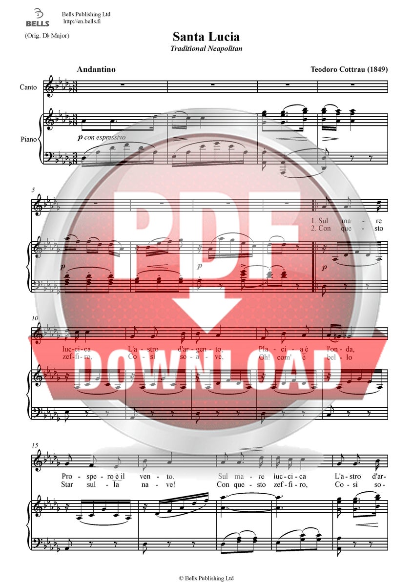 Teodoro Cottrau: Santa Lucia (traditional Neapolitan words, translated into italian by Teodoro Cottrau)
