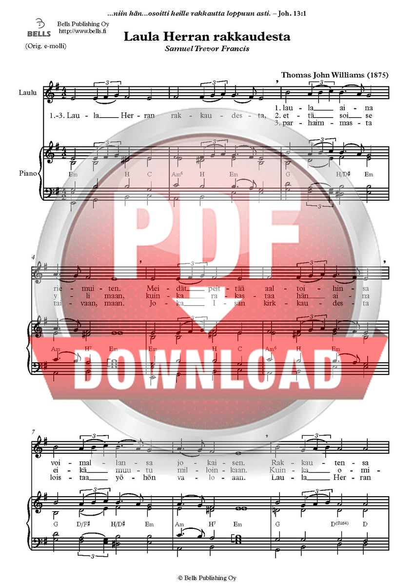 Thomas John Williams: Laula Herran rakkaudesta ['Oh, the deep, deep love of Jesus'] (1890) (Words by Samuel Trevor Francis)